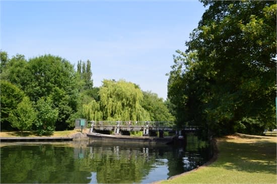 Hurley Lock, dating back to 1773. lies close to the village of Hurley, Berkshire. It is 5.89 km (3.66 mi) downstream from Hambleden Lock and 1.03 km (0.64 mi) upstream from Temple Lock.