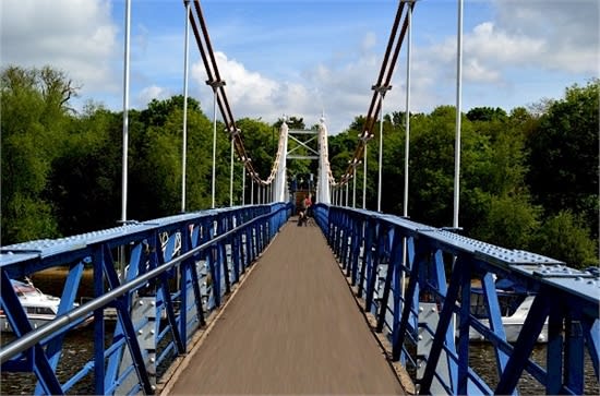 There's a pub with a large beer garden and children's playground in Teddington, just by the beautiful western suspension bridge. From the bridge, you get a great view of the locks and the weir. Joining both footbridges is a small island, ideal for a relaxing stroll, although wooden ramps for cycles, pushchairs etc are only available on the Ham girder bridge.